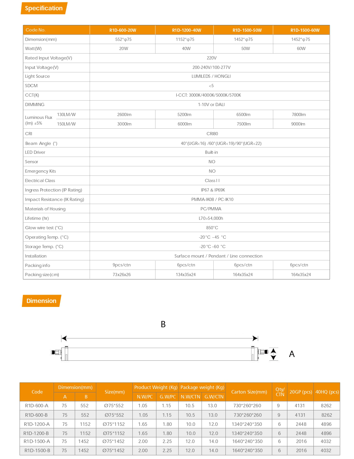 R1D UGR19 Tubular Light-150lm/w