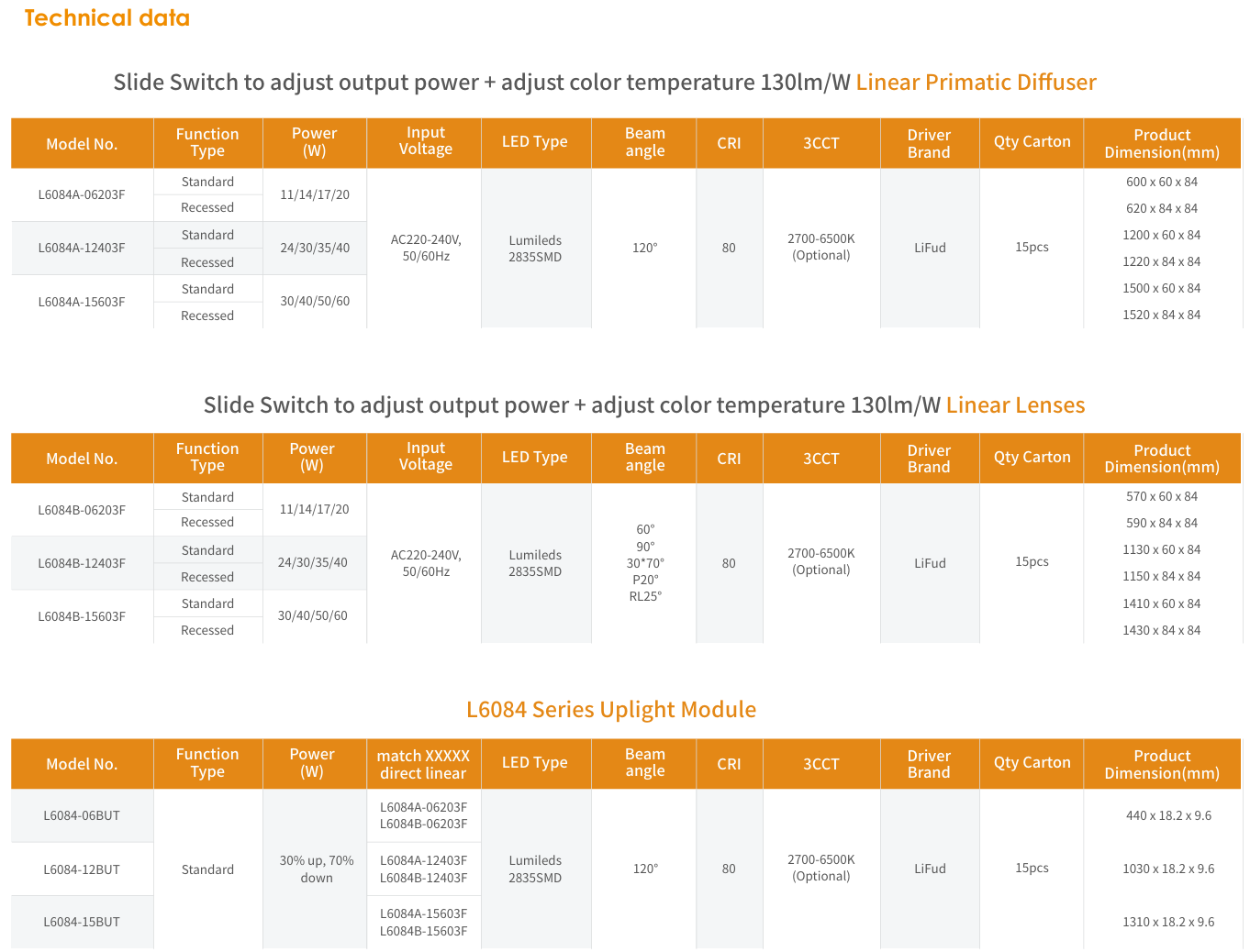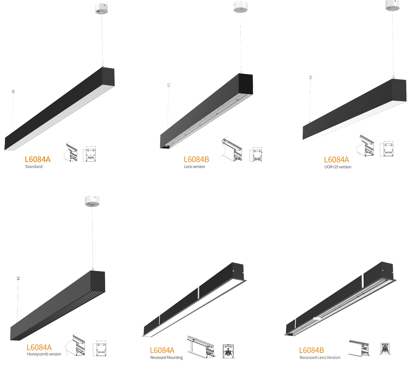 L60 linear is a suspend linear with UP/Down lighting, the CCT & wattage switch on the driver, 4 different diffuser options, optional up-light.